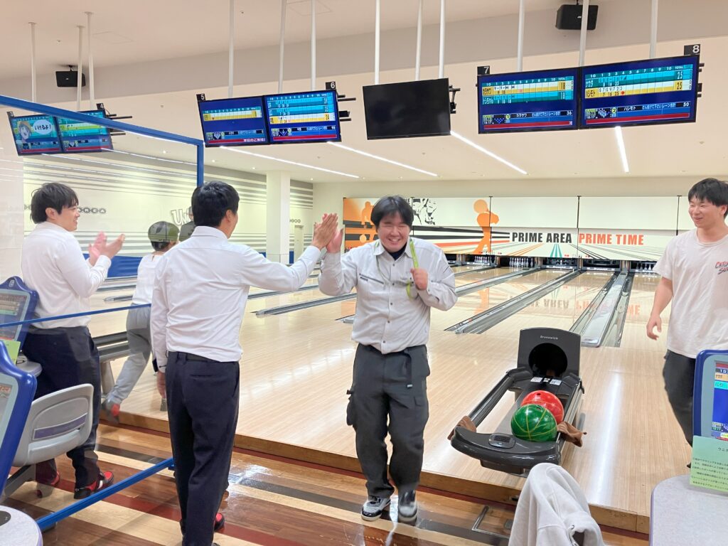 会場は、ピンを倒しても倒せなくても、笑顔が見られる楽しい空間となりました。自分が倒せなくても、仲間がストライクやスペアを取ると、自然とハイタッチや拍手が生まれ、コミュニケーションの活性化に繋がりました。