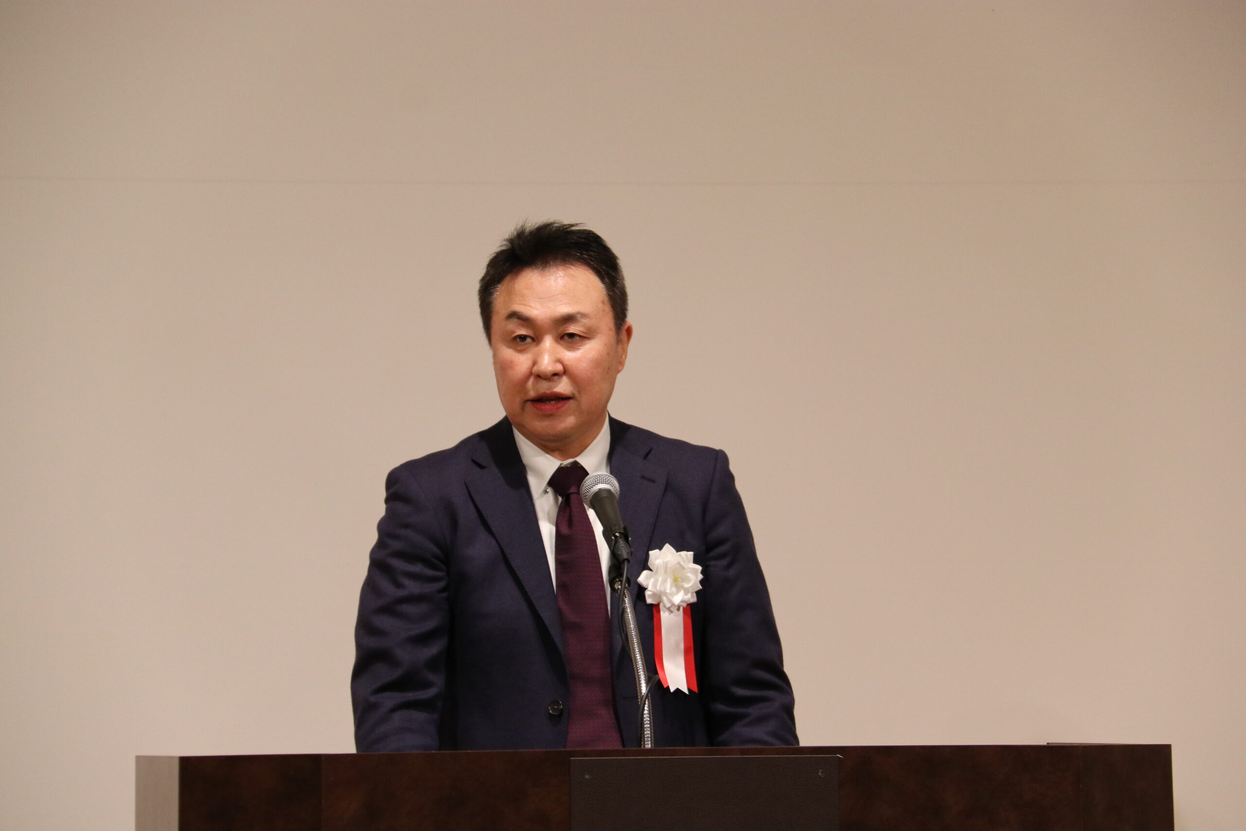 開会挨拶の後、中田庸司徳栄会会長は、「60年に一度の『丙午(ひのえうま)』にちなみ、太陽のようなエネルギーに満ちた、『行動力』と『情熱』を持って自分を輝かせる年にしよう。目まぐるしく変わる世の中に乗り遅れないよう、徳栄会会員同士で知恵を出し合い、DX(Digital Transformation)にも挑戦していきましょう。」と挨拶。