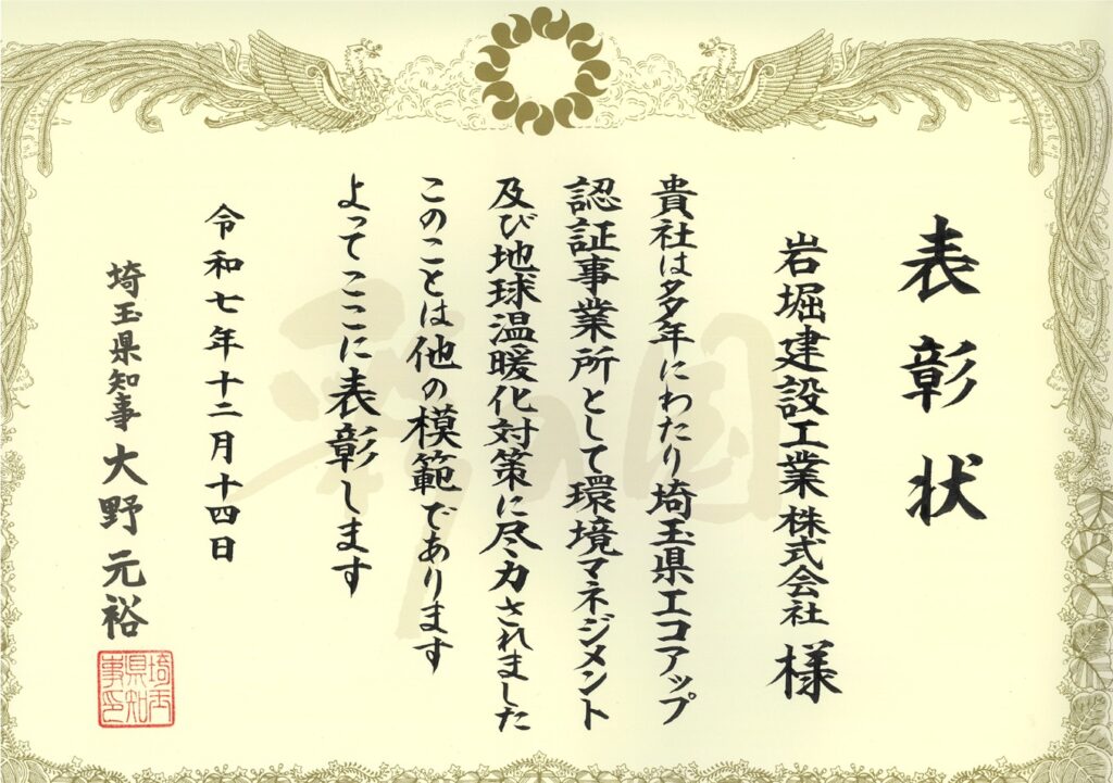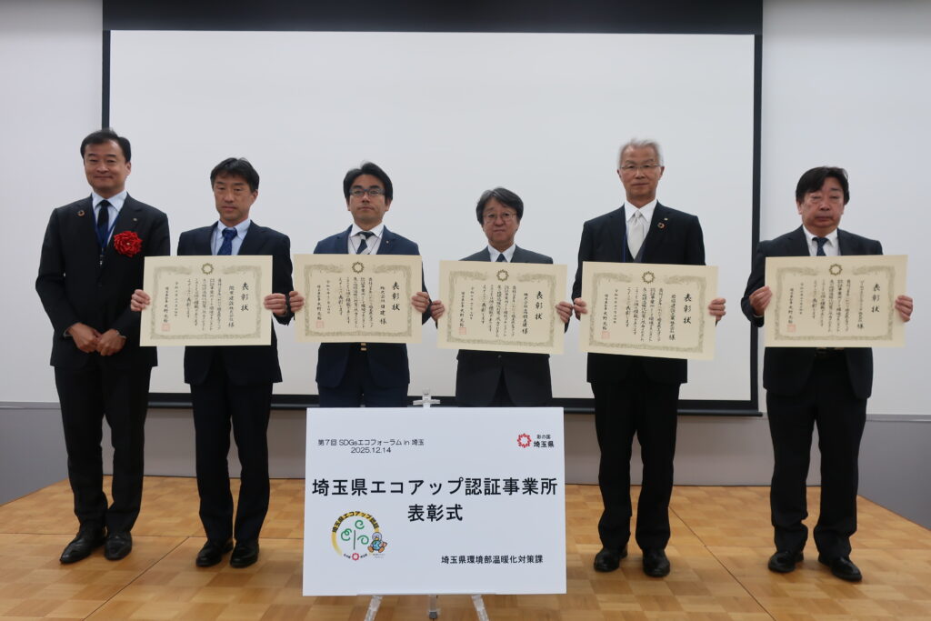 2025年12月14日(日)、大宮ソニックシティにて、埼玉県が主催する「埼玉県エコアップ認証事業所表彰式」が行われました。2015年に「埼玉県エコアップ認証」を取得した弊社は、埼玉県が推し進める環境保全活動に賛同し、10年を迎えることができました。